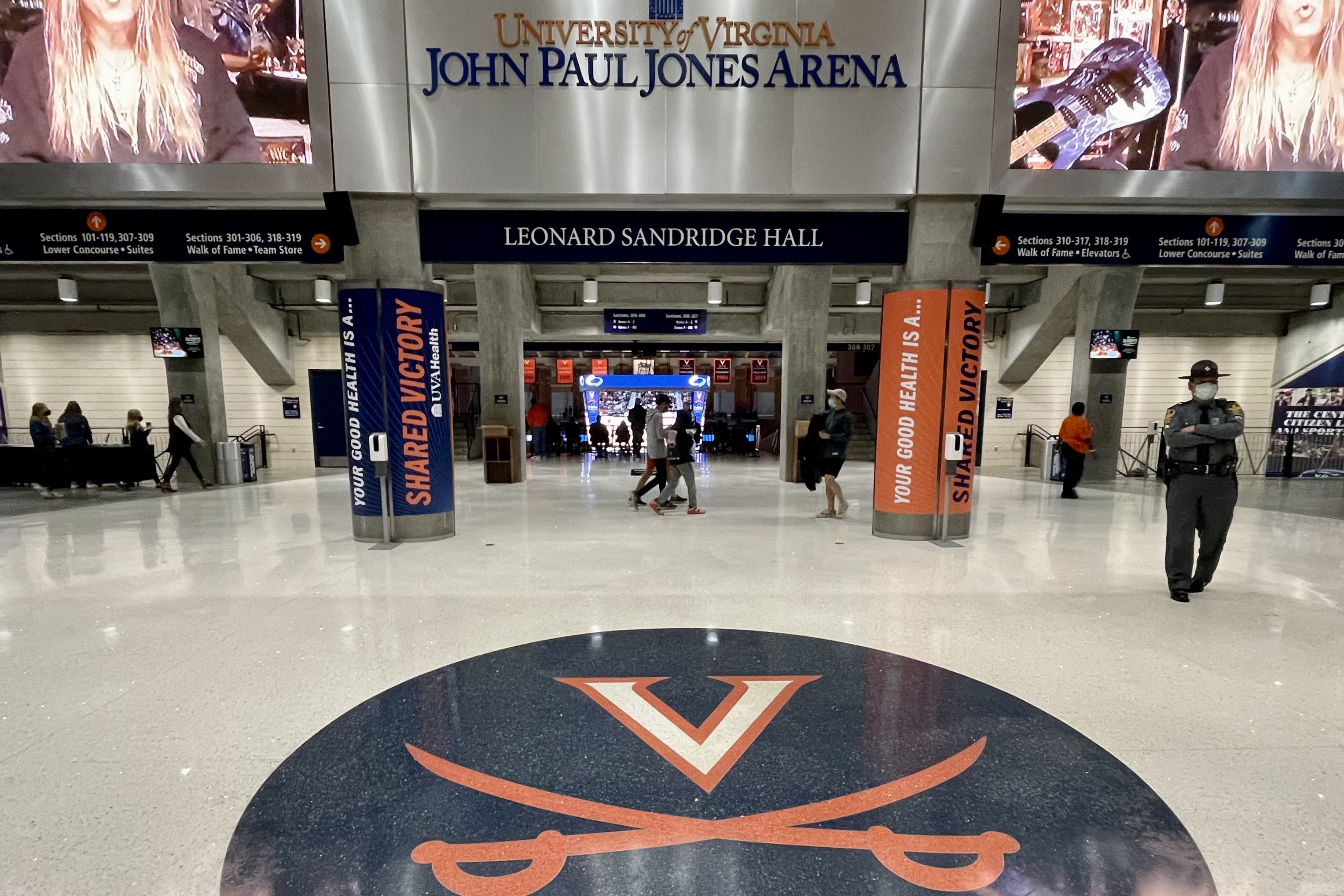I visited John Paul Jones Arena the night before Virginia’s football game vs. Notre Dame. The parking situation was horrendous, with very little vehicle movement near the arena and very few directional indicators. Knowing that I couldn’t park in one of the pass holder lots, I honestly had no idea where to go until I noticed a guy apparently leaving his shift during the middle of the traffic crush, rolled down my window, and asked him where visitors were allowed to park.